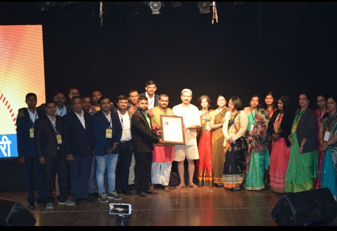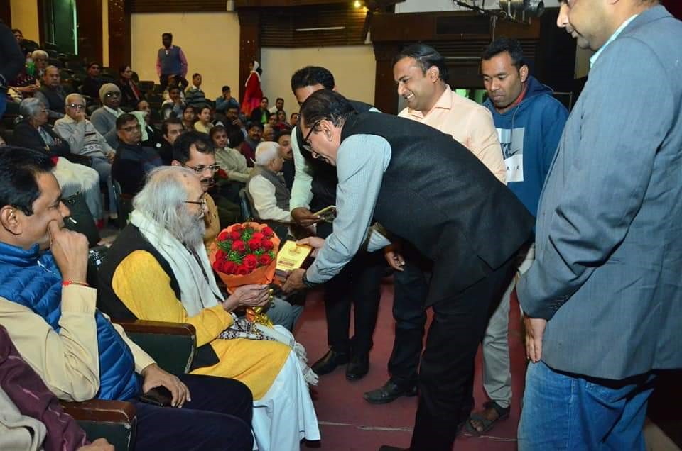 view Honouring Padmabhushan Shivshahir Babasaheb Purandare during play on krantikarak Vasudev Balwant Phadke